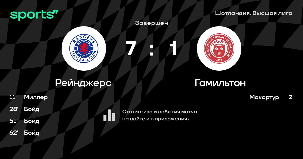 Чемпионат Шотландии. 17-й тур. «Рейнджерс» разгромили «Гамильтон»