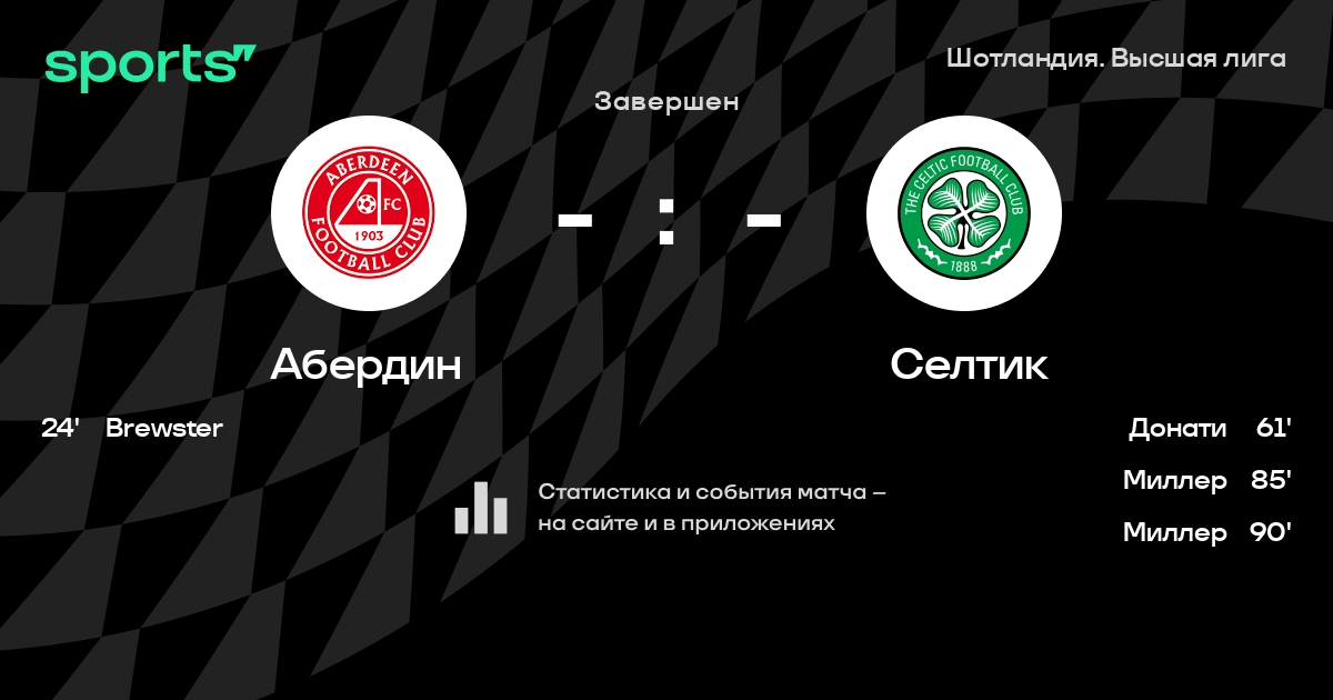Чемпионат Шотландии. «Селтик» обыграл «Абердин», но отстает от «Рейнджерс» на два очка
