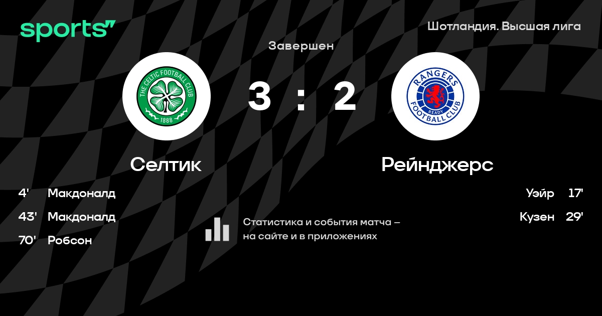 Чемпионат Шотландии. 35-й тур. «Селтик» обыграл «Рейнджерс»