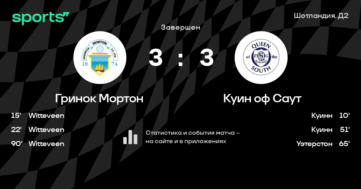 Stewart - McGuffie, Reid, McGregor, Грисен - MacFarlane, Тидсер, Finlayson, Макалистер - Witteveen, Weatherson