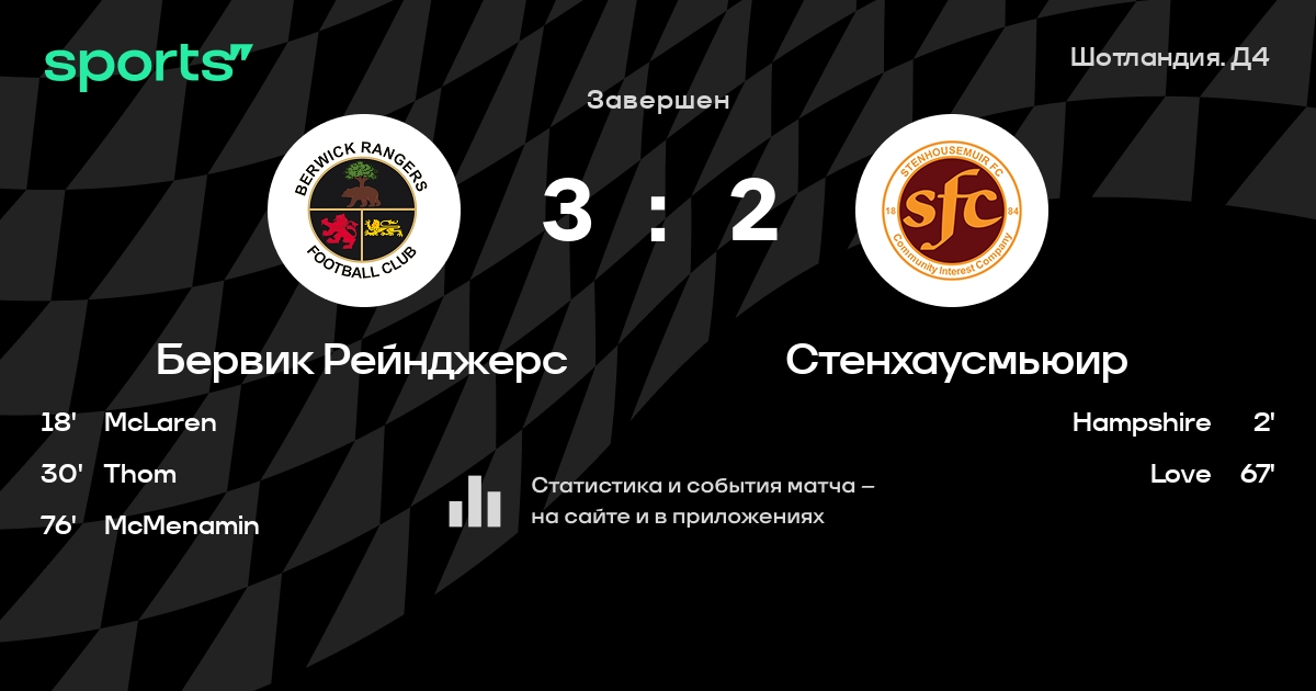 Трансляция Бервик Рейнджерс - Стенхаусмьюир