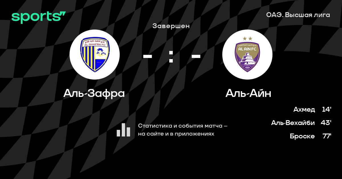 Al Hammadi - Бани-Ясин, Аль-Яммахи, Кассим, Захран, Al Hammadi - Родриго Силва, Джумаа, Джумаа, Абдулхади - DianéЗапасные: Mohammed, Аль-Хаммади, Мурад, Аль-Хаммади, Al Musaabi, Аль-Джабри, Диоп