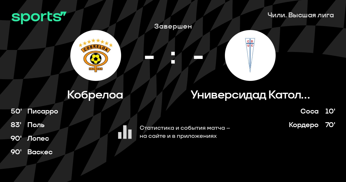 Acevedo Garrido - Суарес, Сильва, Рейносо - Кортес, Лима, Грасиан - Васкес, Писарро, Поль, КуэльярЗапасные: Палос, Сануэса, Catrileo Cifuentes, Диттборн, Гонсалес, Паласиос, Лопес