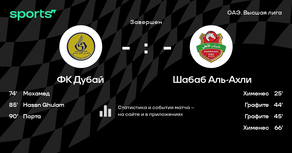ФК Дубай – Шабаб Аль-Ахли: коэффициенты