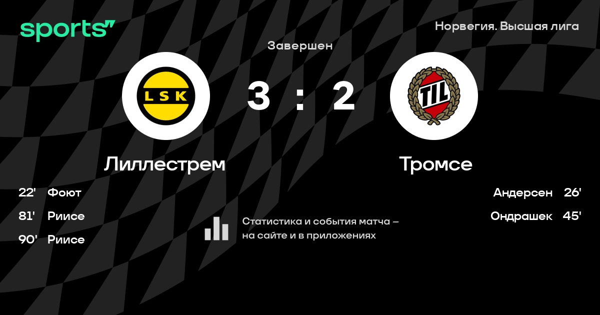 Удьюс, Андерссон - Эстли, Хиппе, Стор, Рингстад - Моэн, Риисе, Мьельде, Пальмасон - ХельстадЗапасные: Ориги, Кнудтсон, Эдегор, Фофана, Омоиджуанфо, Фрайдей
