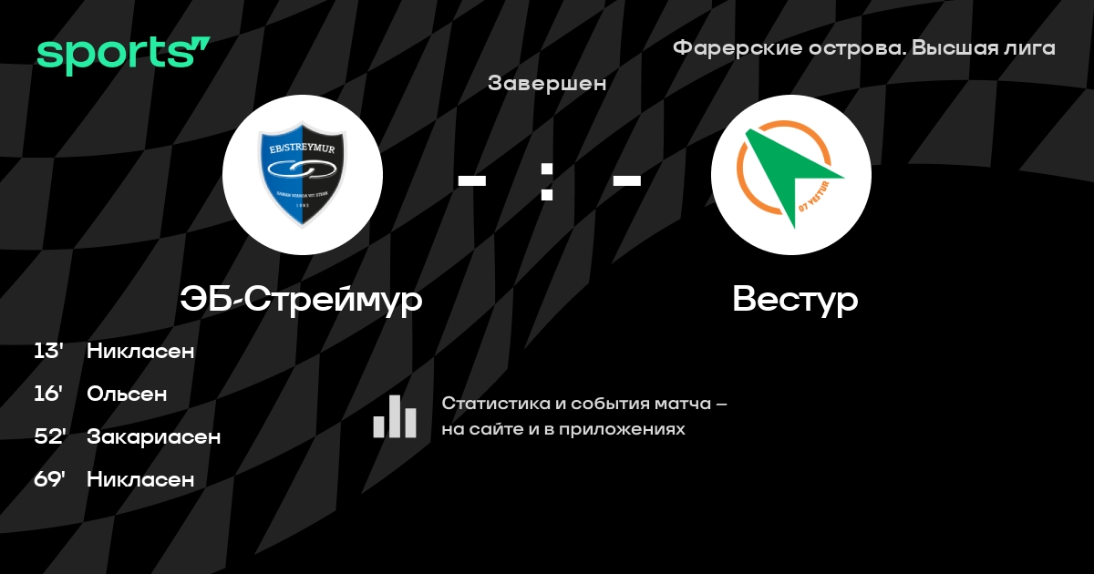 Торгард - Юрхус, Хансен - Ханссен, Даниэльсен, Нильсен, Самуэльсен, Ольсен, Якобсен - Никласен, ЗакариасенЗапасные: Хансен, Дам, Ольсен, Хансен, Магнуссен