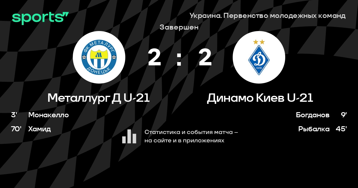 Металлург Д U-21 - Динамо Киев U-21: статистика матча