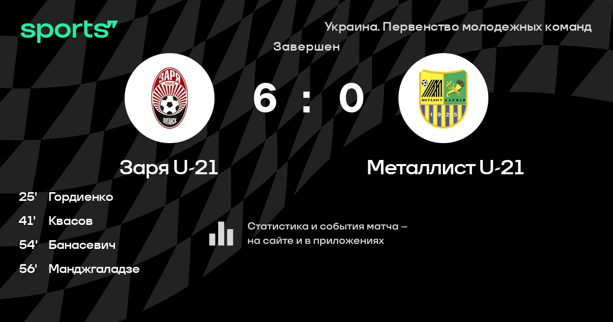 Заря U-21 - Металлист U-21: статистика матча
