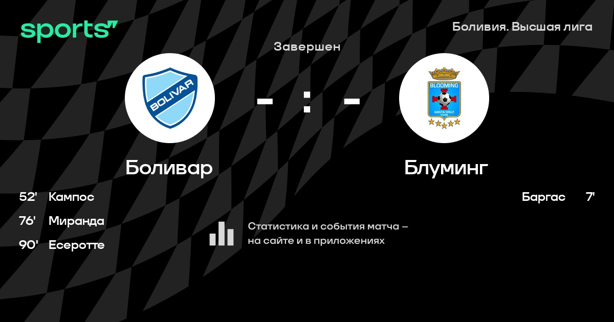 Galarza Soliz - Ортис, Диас, Педраса - Вака, Мельгар, Вердугес, Лоаиса - Сандоваль, БаргасЗапасные: Вака, Кандия, Arroyo Cabrera, Хименес, Сеговия, Бойеро, Abot