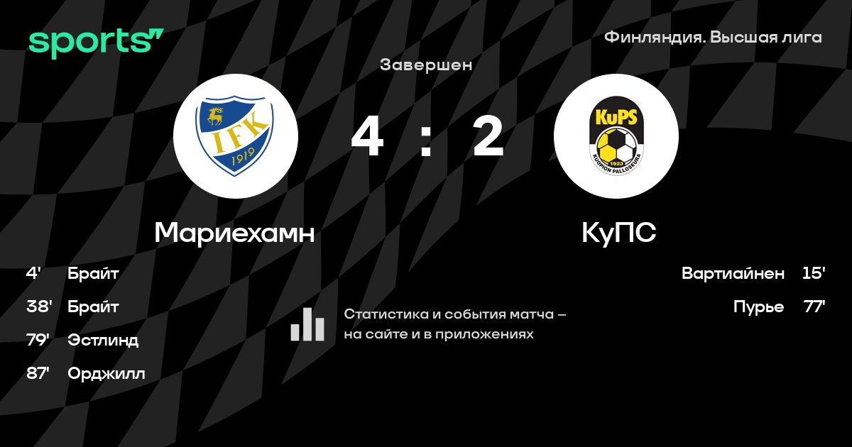 Энкельман - Бюската, Кукка, Андерссон, Лююски - Адлам, Лагерблом - Брайт, Amani, Орджилл, АссисЗапасные: Виртанен, Йокихаара, Мякинен, Эстлинд
