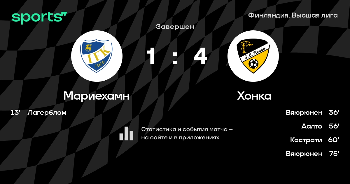 Энкельман - Томпсон, Лююски, Бюската, Андерссон, Виртанен - Виклеф, Лагерблом, Адлам, Градецки, Эстлинд - Запасные: Виртанен, Кукка, Йокихаара, Sundman, Брайт