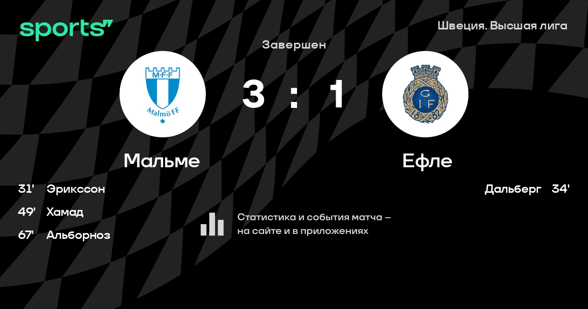 Далин - Хальсти, Альборноз, Юханссон, Рикардиньо, Янссон - Форсберг, Хамад, Терн, Эрикссон - РантиЗапасные: Ольсен, Конате, Крун, Петрович, Фриберг, Чибицки, Фади