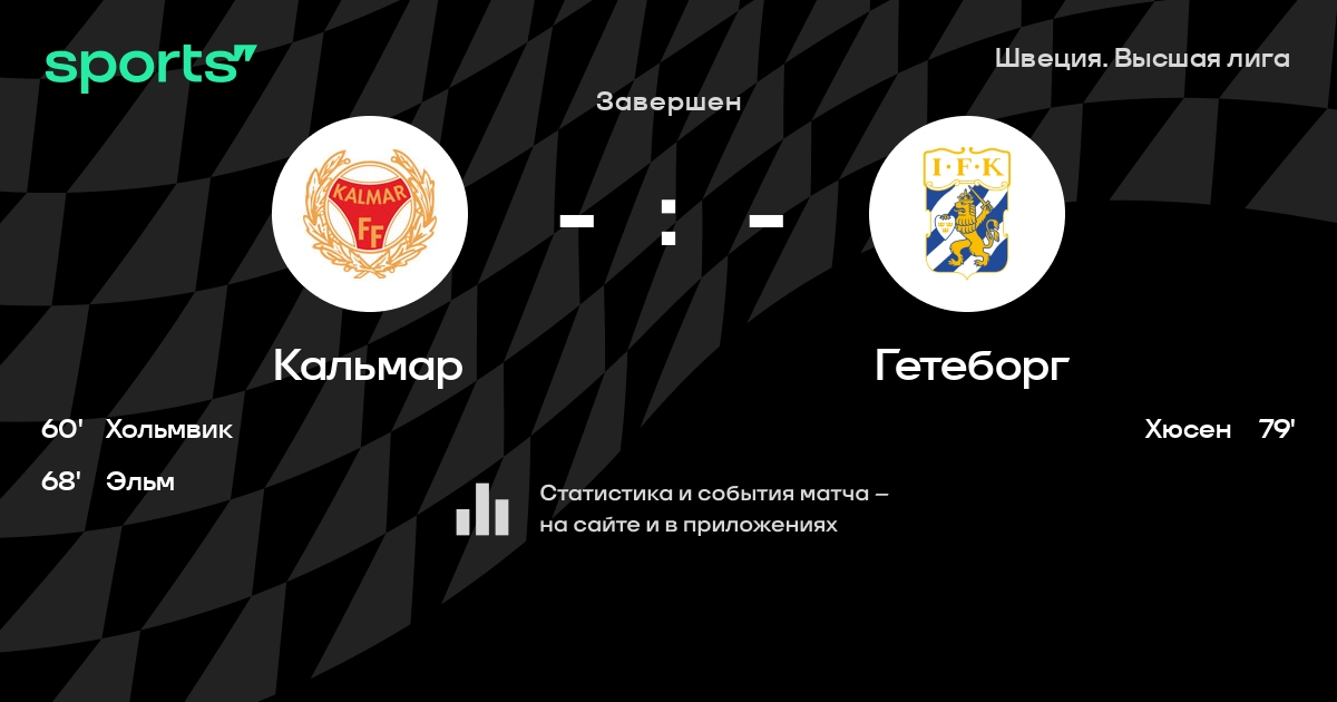 Альвбоге - Бьерсмюр, Саломонссон, Йонссон, Юханссон - Ларссон, Юханссон - Седер, Вибе, Хюсен, ХаглундЗапасные: Саннберг, Дюрестам, Вальгардссон, Фарнеруд, Боянич, Энгвалль