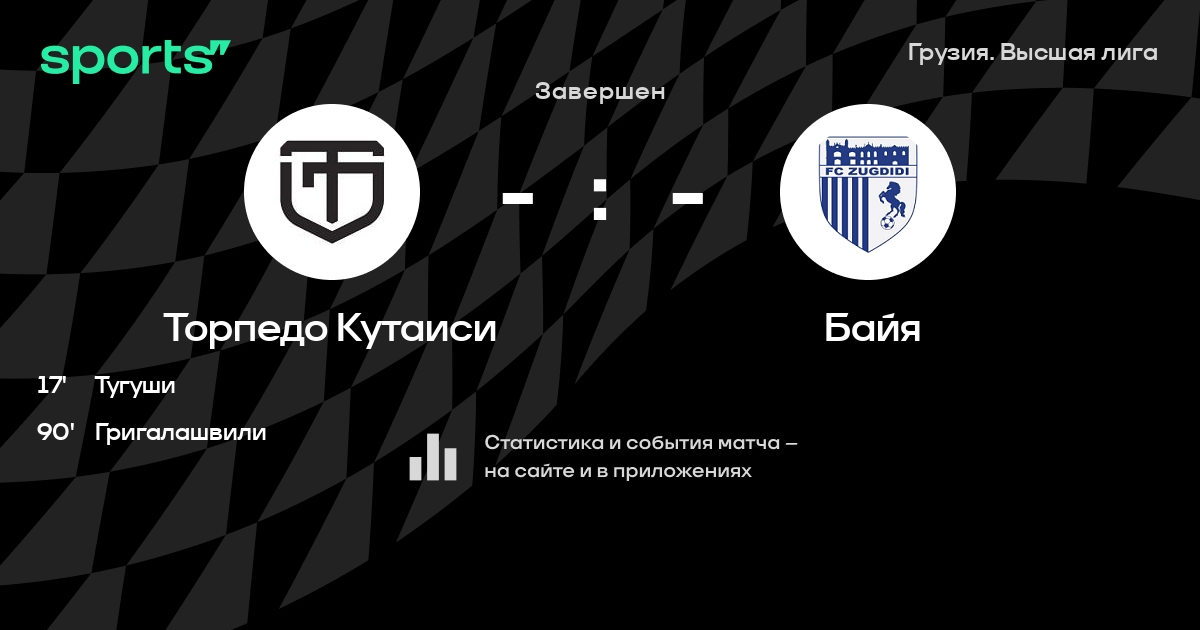 | 3 | Торпедо Кутаиси | 32 | 19 | 7 | 6 | 57 | 30 | +27 | 64 | ||