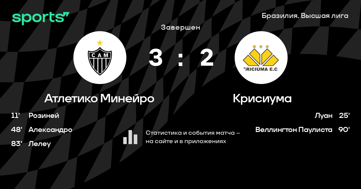 Виктор - Жуниор Сезар, Ревер, Жемерсон, Маседо - Розиней, Жосуэ, Гильерме, Луан - Александро, Нето БеролаЗапасные: Ли, Алекс Силва, Рафаэл Маркес, Лелеу, Ришарлисон, Лукас Кандидо, Жо