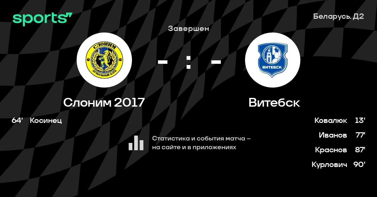 | 3 | Витебск | 30 | 16 | 7 | 7 | 40 | 29 | +11 | 55 | ||
