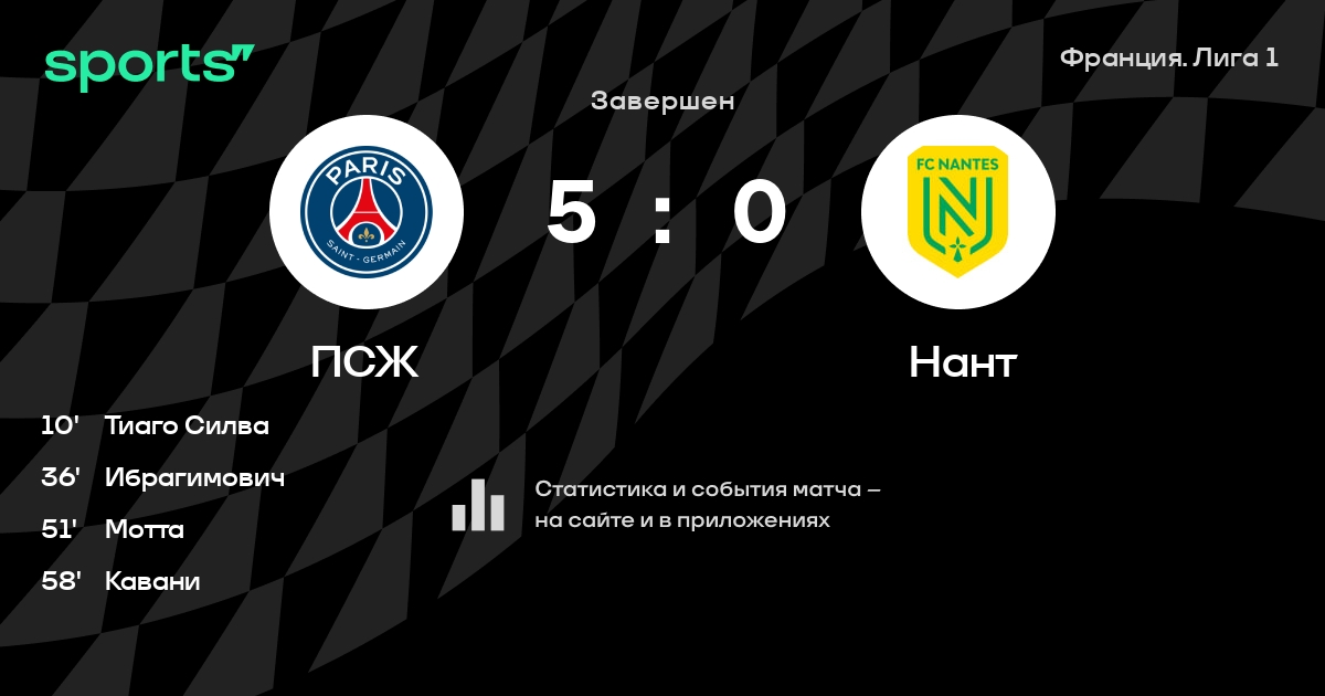 Сиригу - Максвелл, Тиаго Силва, Алекс, ван дер Виль - Мотта, Лавесси, Кавани, Матюиди, Верратти - ИбрагимовичЗапасные: Меньян, Динь, Маркиньос, Пасторе, Менез, Лукас Моура