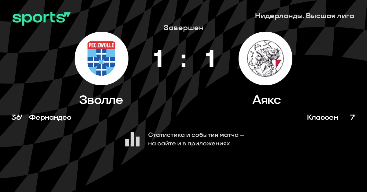Чемпионат Голландии. 23-й тур. «Аякс» сыграл вничью с «Зволле» и другие результаты