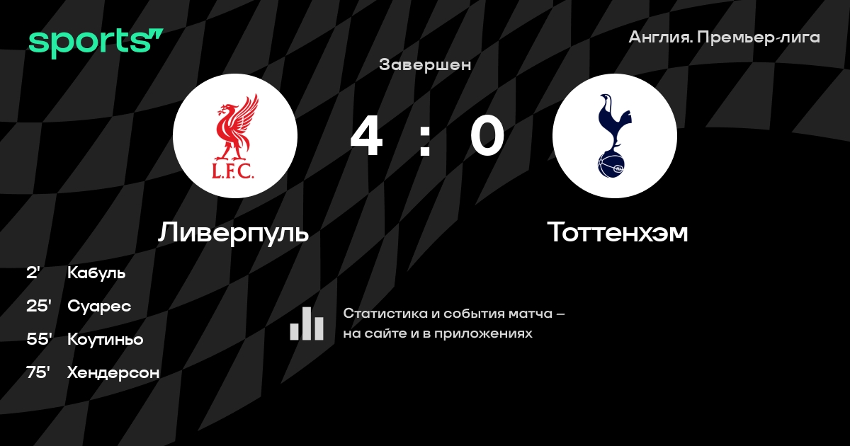 Миньоле - Фланаган, Аггер, Шкртел, Джонсон - Старридж, Коутиньо, Стерлинг, Хендерсон, Джеррард - СуаресЗапасные: Джонс, Сако, Сиссоко, Мозес, Лейва, Аллен, Аспас