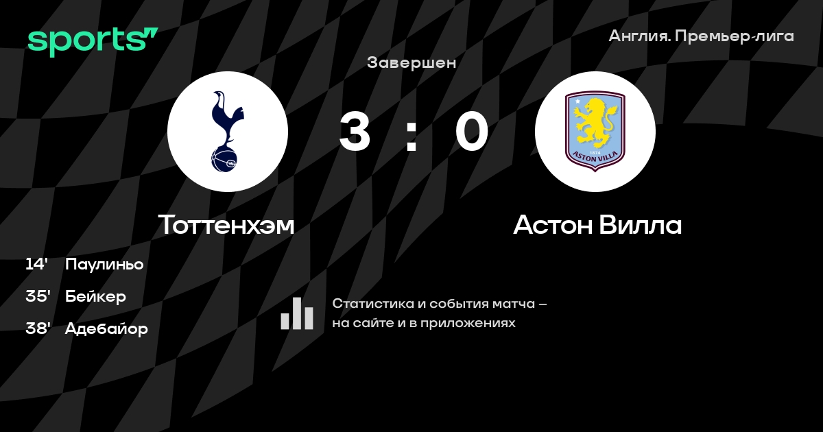 «Астон Вилла» 0-2 «Тоттенхэм». Наш клиент