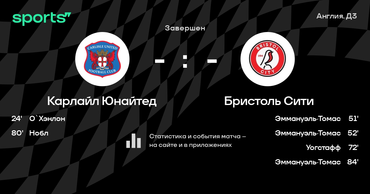 Трансляция Карлайл Юнайтед - Бристоль Сити