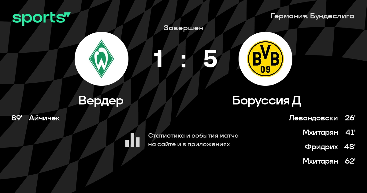 «Вердер» – «Боруссия» Дортмунд. Мхитарян оформил второй дубль в сезоне