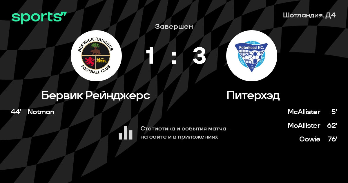 Smith - Noble, Gilfillan, Donaldson, Ross, Strachan - McCann, Cowie, Redman - Rodgers, McAllisterЗапасные: Jarvie, Brown, McGlinchey, Buchan, McLaren