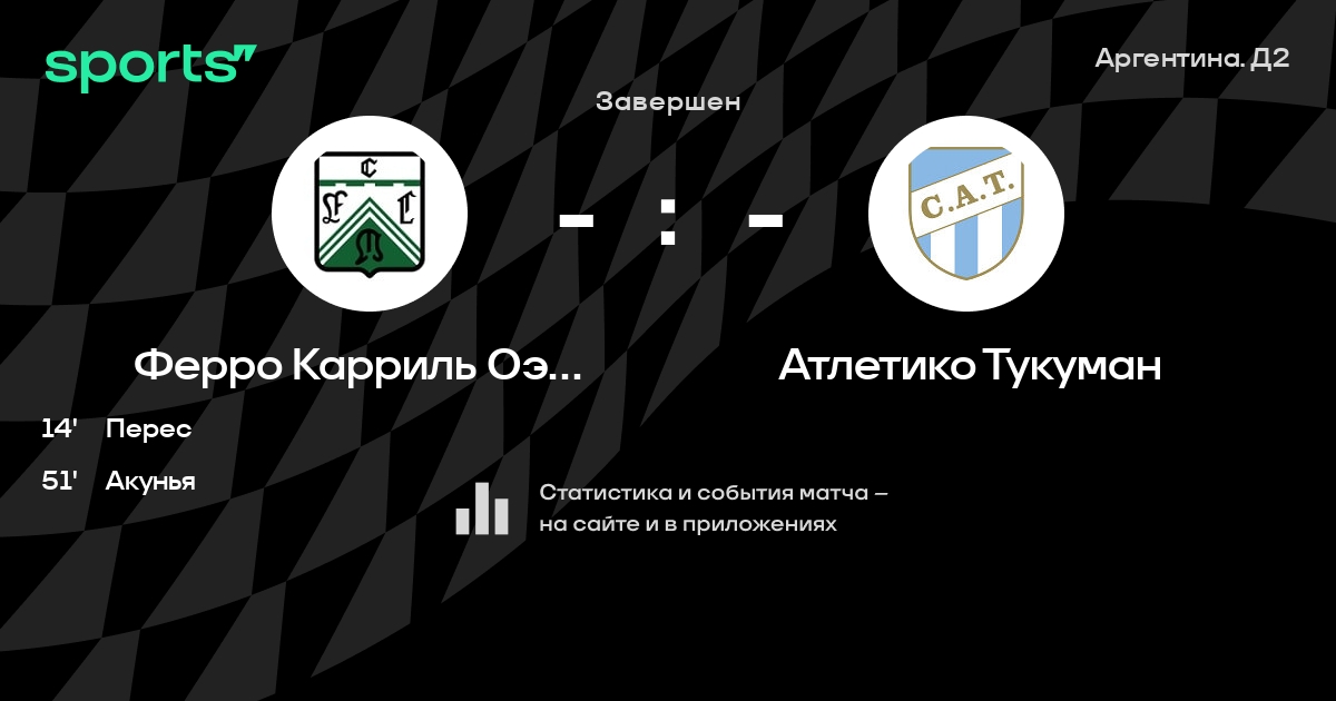 Трансляция Ферро Карриль Оэсте - Атлетико Тукуман
