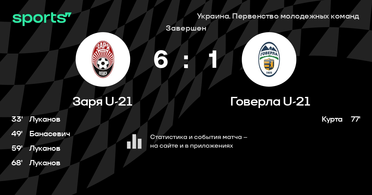 Заря U-21 - Говерла U-21: статистика матча
