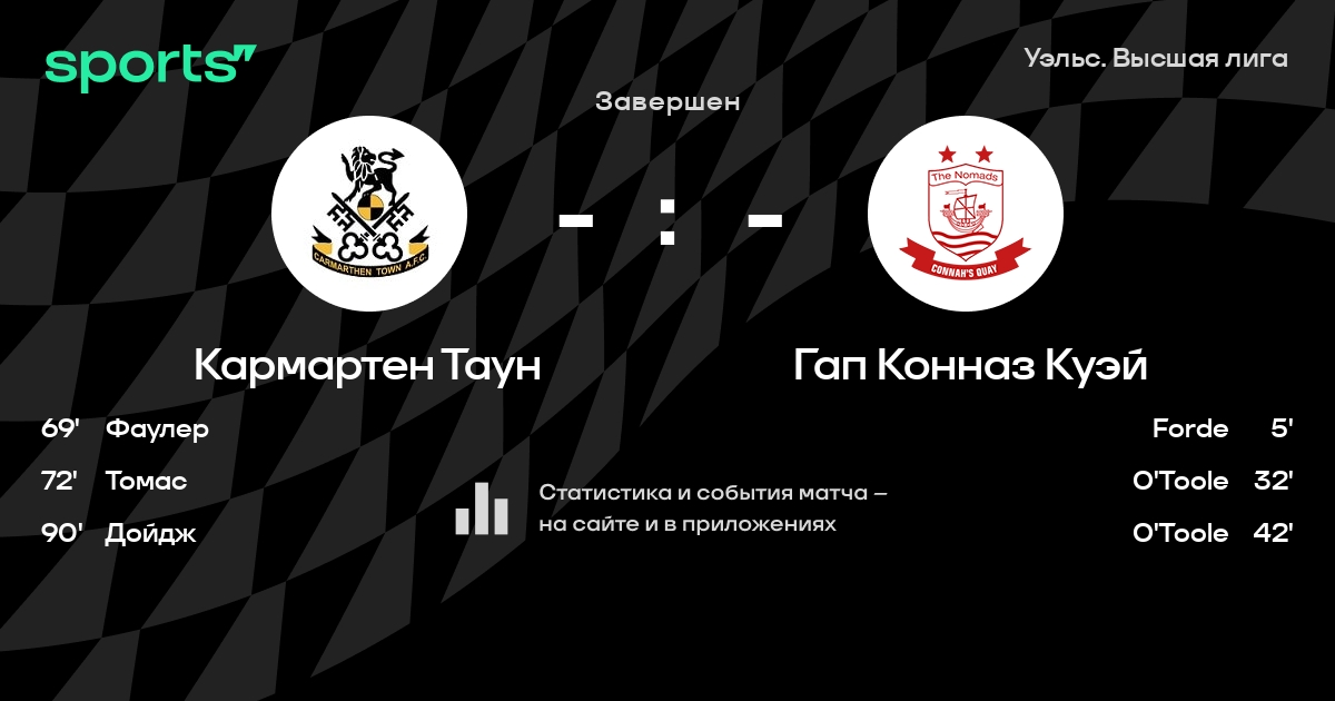 Кармартен Таун - Гап Конназ Куэй: положение в турнире