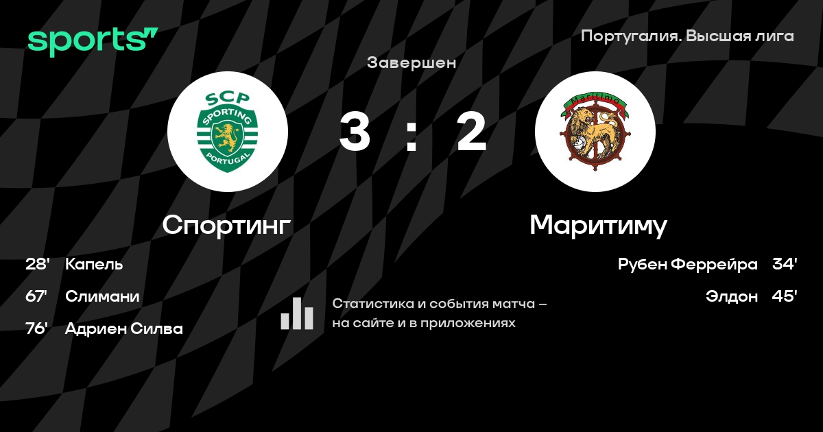 Руй Патрисиу - Соареш, Nascimento, Дайер, Рохо - Адриен Силва, Вильям Карвалью, Капель, Эмануэл, Каррильо - МонтероЗапасные: Марсело Бук, Маурисио, Ринаудо, Андре Мартинш, Карлуш Мане, Слимани, Эдуарду