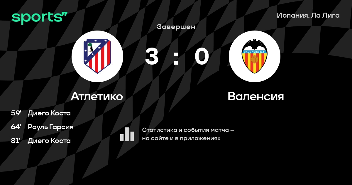 Куртуа - Филипе Луис, Миранда, Годин, Хуанфран - Туран, Коке, Тиагу, Габи - Диего Коста, ВильяЗапасные: Арансубия, Алдервейрелд, Инсуа, Рауль Гарсия, Оливер Торрес, Родригес
