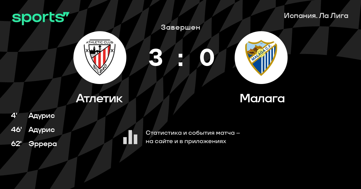 Чемпионат Испании. 33-й тур. «Атлетик» разгромил «Малагу» и другие результаты