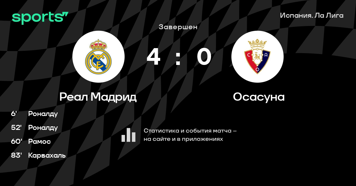 Диего Лопес - Начо, Рамос, Варан, Марсело - Ди Мария, Ильярраменди, Модрич - Роналду, Мората, ИскоЗапасные: Касильяс, Карвахаль, Коэнтрау, Пепе, Каземиро, Бензема