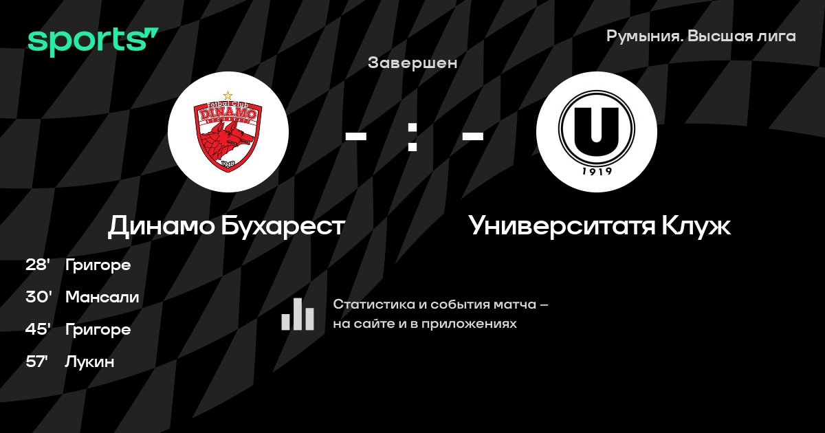 Трансляция Динамо Бухарест - Университатя Клуж