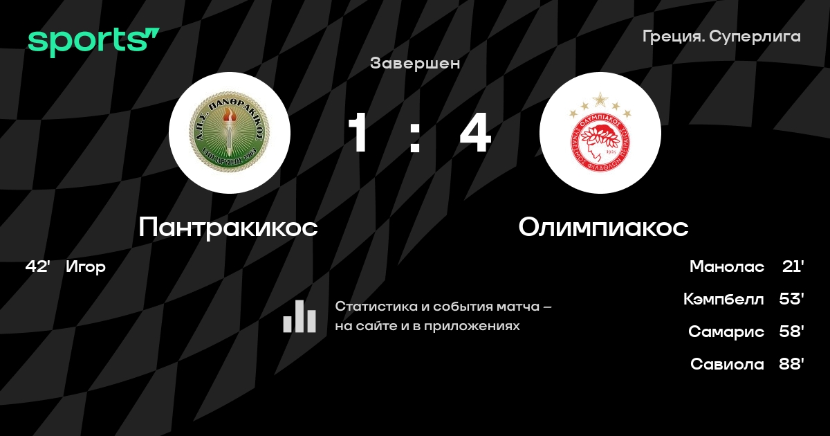 Трансляция Пантракикос - Олимпиакос