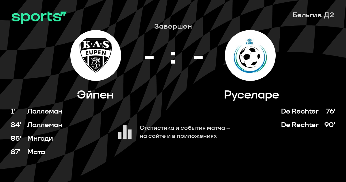 Доймеланд - Дьедиу, Кенн, Кабаселе, Ochoa López - Схоутерден, Диалло, Басси, Асамоа - Expósito Presseguer, Лаллеман