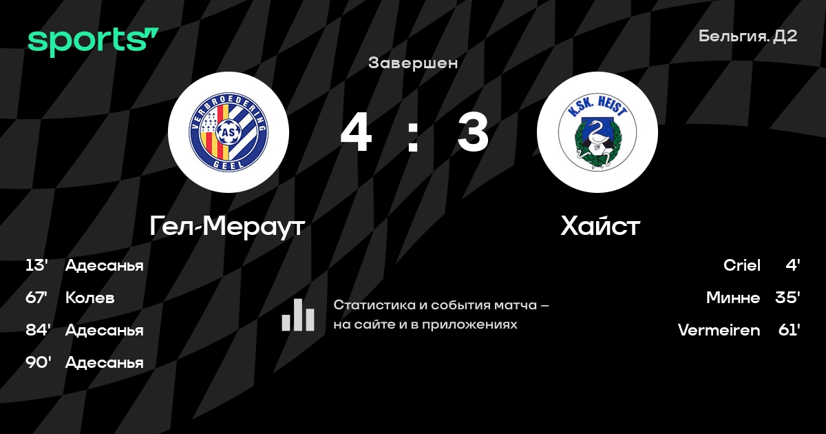 Coenen - Christiaens, Сантерманс, Meeus, Минне - Swolfs, van Mierlo - Адесанья, Колев, Hoefnagels, Бержан