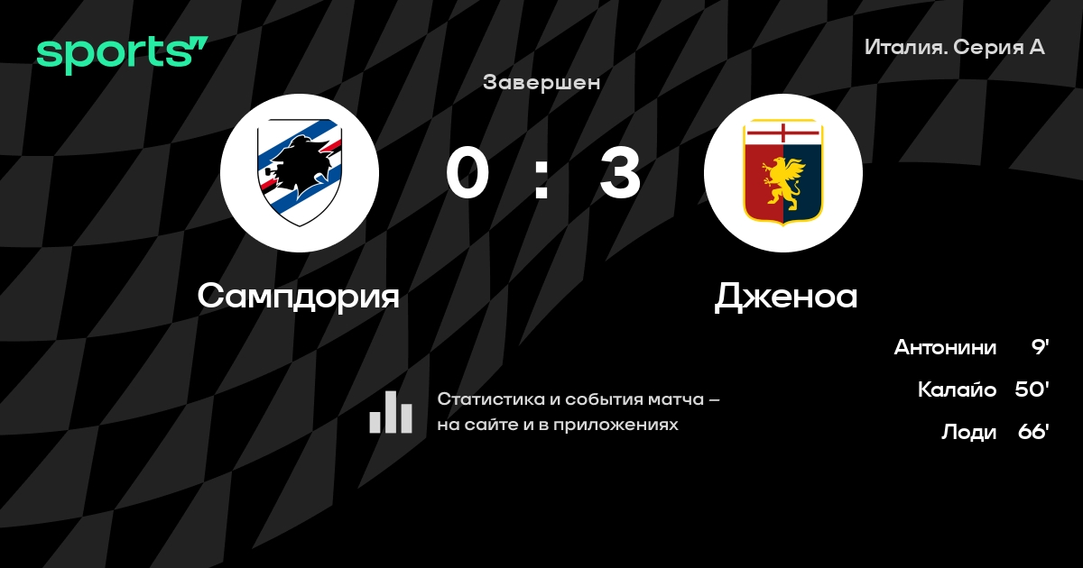 Анжело - Коста, Паломбо, Гастальделло - Реджини, Бьярнасон, Обианг, Крстичич, Де Сильвестри - Габбьядини, ЭдерЗапасные: Фьорилло, Мустафи, Саламон, Кастеллини, Родригес, Генцоглу, Ренан, Сориано, Барилла, Гавацци, Поцци, Сансоне