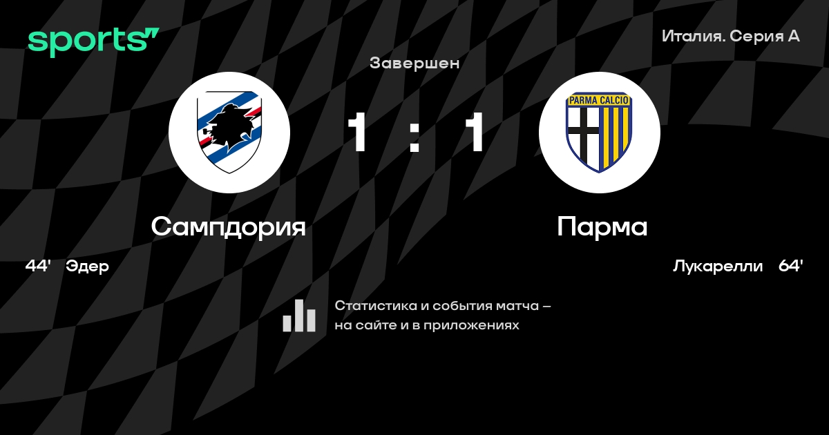 Анжело - Реджини, Гастальделло, Мустафи, Де Сильвестри - Паломбо, Обианг, Сориано, Эдер, Крстичич - СансонеЗапасные: Фьорилло, Коста, Форназье, Родригес, Бьярнасон, Ренан, Вшолек, Гавацци, Эрамо, Поцци, Петанья