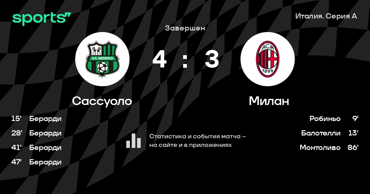Аббьяти - Эмануэлсон, Бонера, Сапата, Де Шильо - Ночерино, де Йонг, Робиньо, Кака, Кристанте - БалотеллиЗапасные: Коппола, Габриэл, Дзаккардо, Мексес, Сильвестре, Рами, Сапонара, Поли, Монтоливо, Матри, Хонда, Паццини