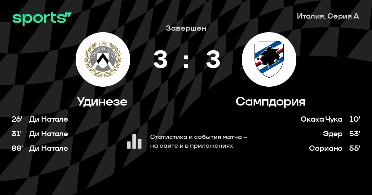 Удинезе – Сампдория: коэффициенты