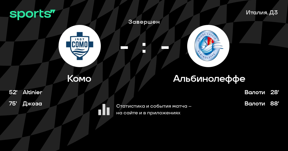 Оффреди - Beduschi, Регонези, Алльеви, Сальви, Тедески - Кальвано, Джиразоле, Валоти, Тогурдо - ПезентиЗапасные: Cortinovis, Ондеи, Пиччини, Maietti, Calì, Corradi, Aurelio