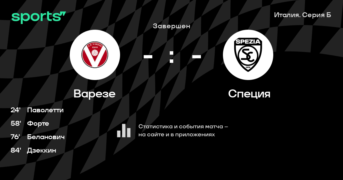 Леали - Боргезе, Мильоре, Лизуццо, Чеккарелли, Мадонна - Сеймур, Саммарко, Карроцца, Бово - ЭбагуаЗапасные: Валентини, Магнуссон, Ашонг, Бальдандзедду, Ривас, Моретти, Сансовини, Кателлани, Феррари