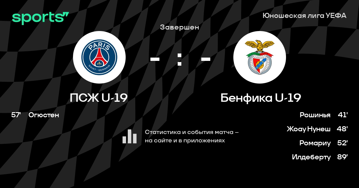 ПСЖ U-19 – Бенфика U-19: коэффициенты