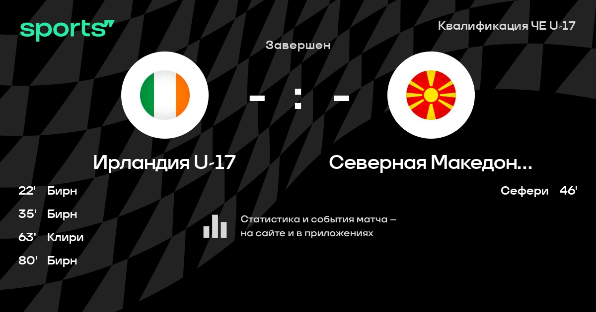 Трансляция Ирландия U-17 - Северная Македония U-17
