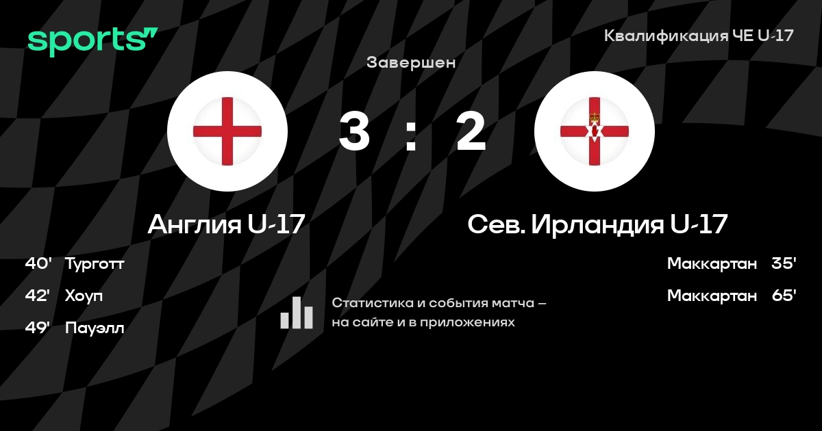 Трансляция Англия U-17 - Сев. Ирландия U-17