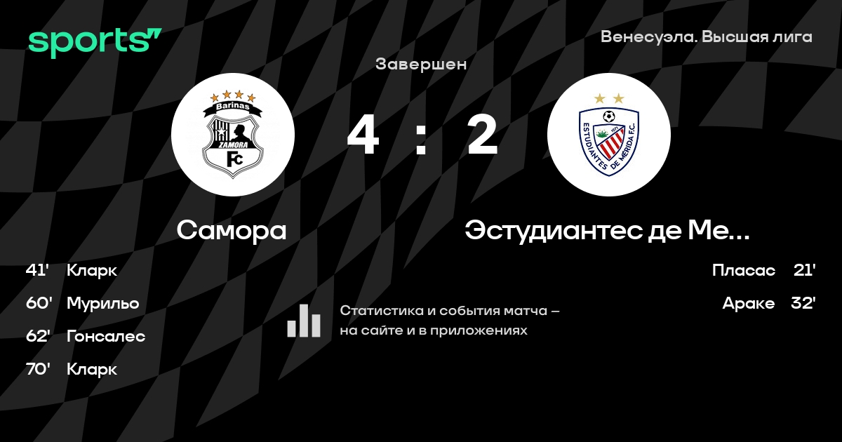 Rivas Quintero - Лобо, Пласас, Альварес, De Castro Storace, Ла Мантия - Родригес, Лобо, Salazar Tafur - Ириберри, Араке