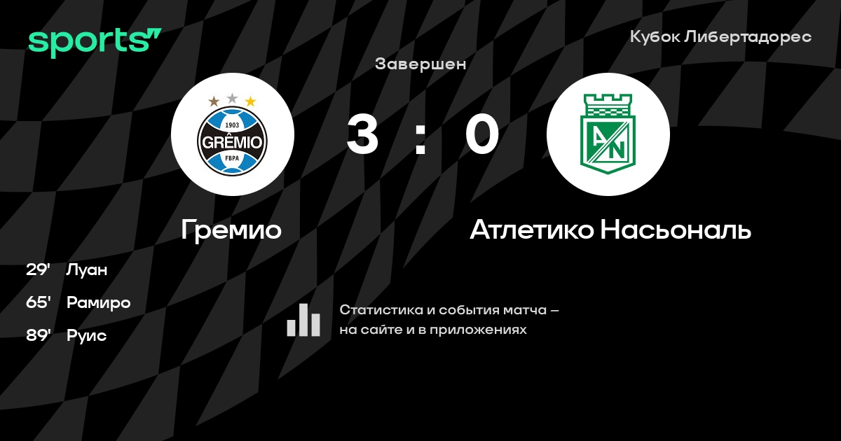 Гроэ - Венделл, Луис Родолфо, Верлей, Пара - Риверос, Эдиньо, Зе Роберто, Рамиро, Луан - БаркосЗапасные: Бузатто, Брессан, Руис, Родригес, Эвералдо, Дуду