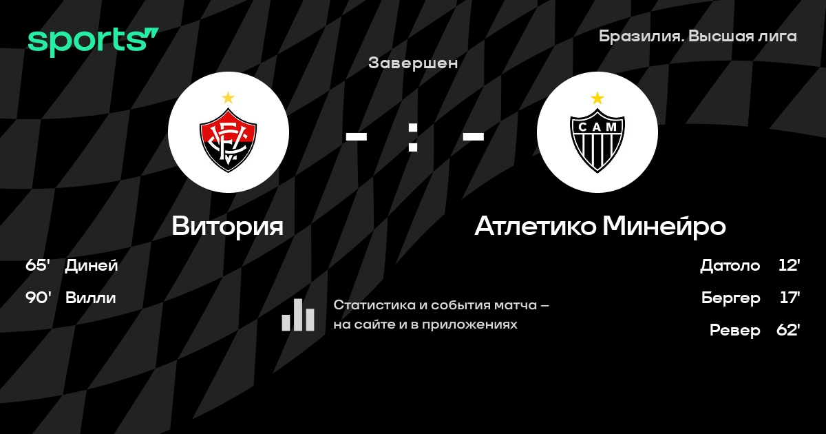 Чемпионат Бразилии. 23-й тур. «Интернасьонал» разгромил «Атлетико Минейро», гол Вагнера Лава принес победу «Палмейрасу»